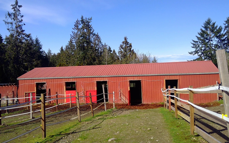 We provide high-quality hay from a reputable distributor twice daily, and feed grains and supplements you provide and prepare. Water buckets are filled and skimmed daily and washed several times per week. A hot water wash rack makes cool weather baths comfortable.